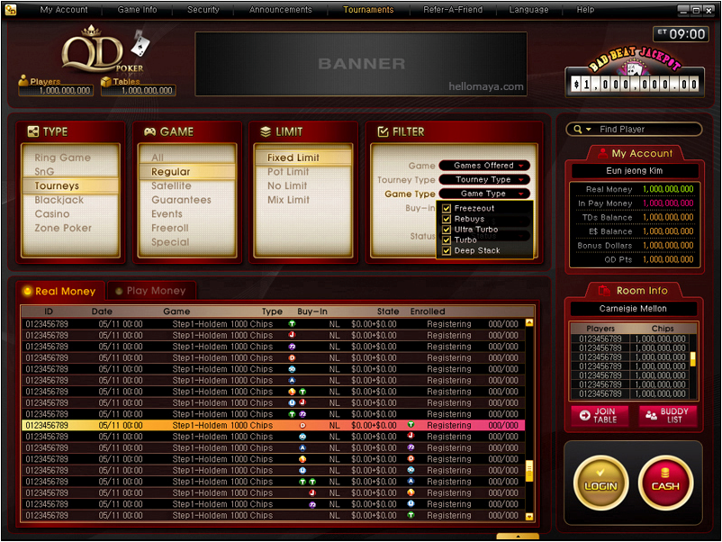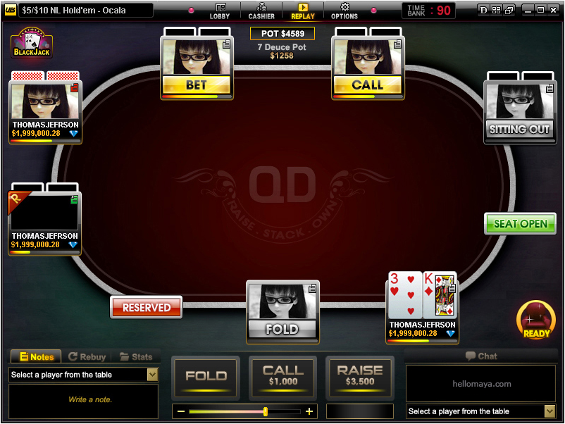 Game Screen for "Hold’em, Omaha, 7Stud, Black Jack"