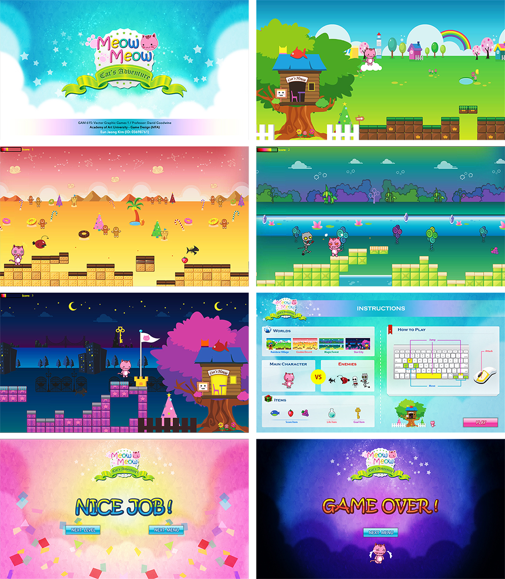 Title: “NOM 2" Genre: Mobile One-Button Game Company: Gamevil Co., Ltd. | 2005 Position: UI, Character, Map, Objects, Web and POP Design Tools: Photoshop, Illustrator, G-tool