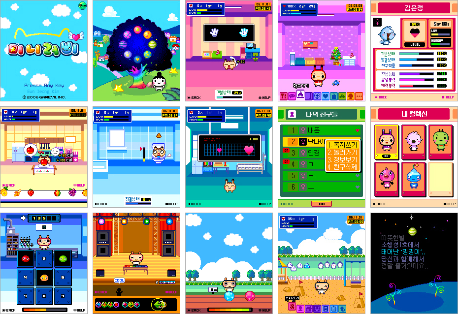 Title: “Mini Gochi" Genre: Mobile Training Game Company: Gamevil Co., Ltd. | 2005 Position: UI, NPC, Map and Objects Design Tools: Photoshop, Illustrator, G-tool